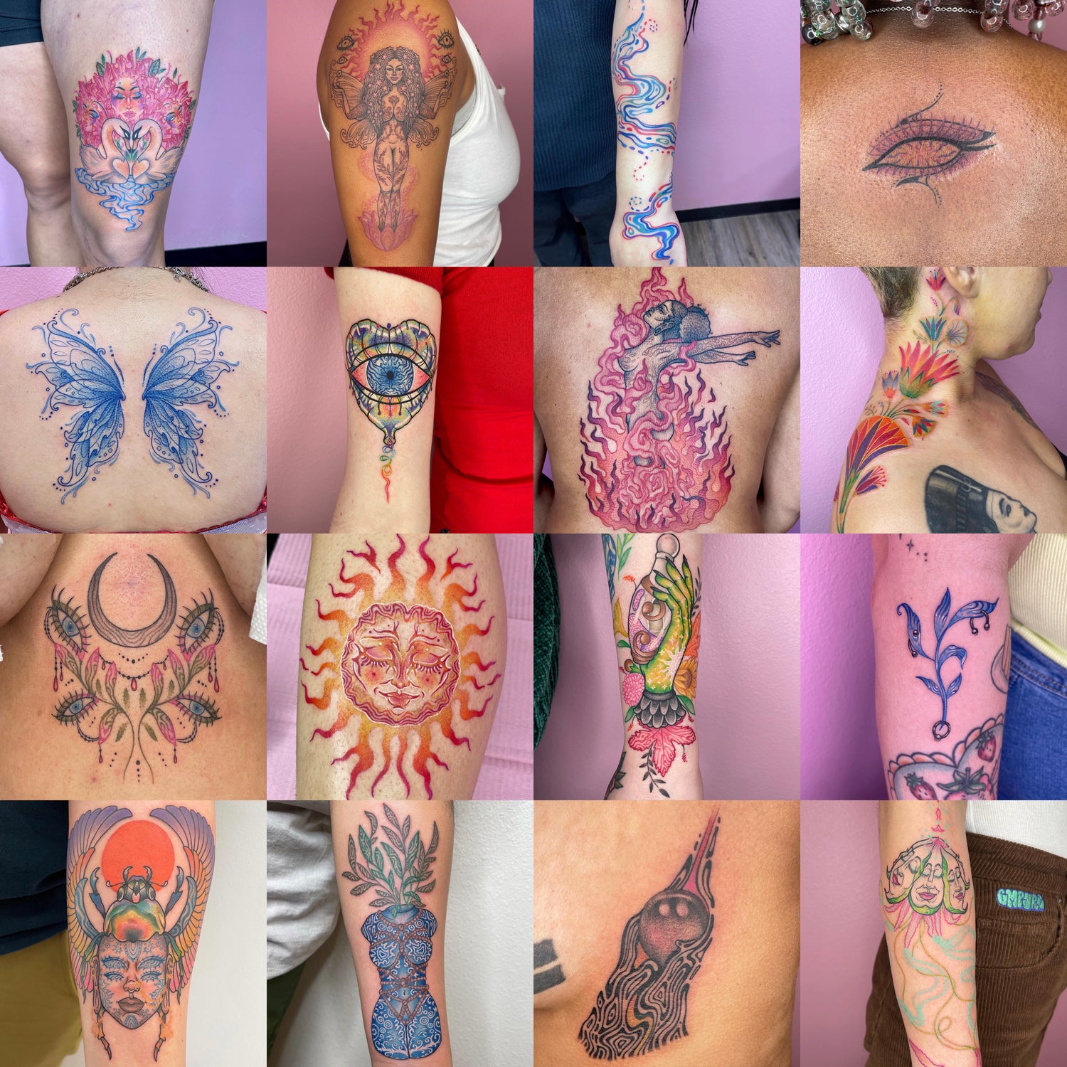 Specializing in color, surrealism, custom work on all skin types. Minimum: $200 (& $200 hourly rate for large scale/multiple pieces. $100 deposit